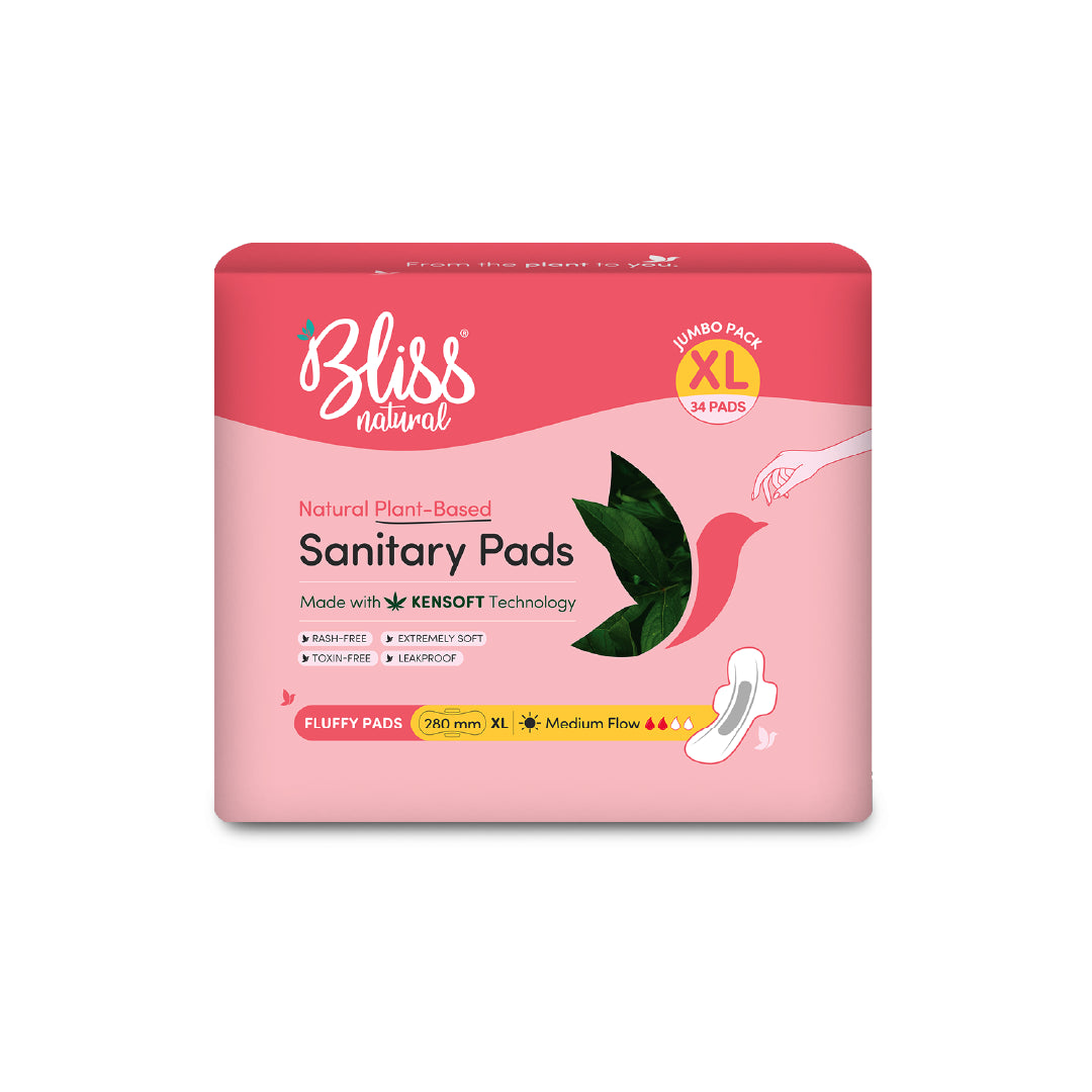 Buy Organic Sanitary Pads - XXL Fluffy-Jumbo (34 Pads) - Bliss Natural