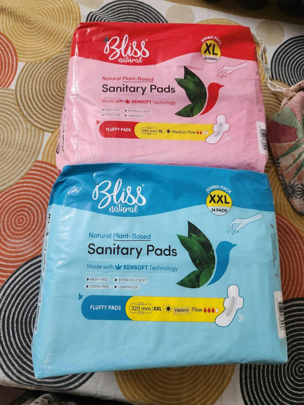 Bliss Organic Sanitary Pads | XL Fluffy Jumbo Pack (34 Pads) + XXL Fluffy Jumbo Pack (34 Pads)