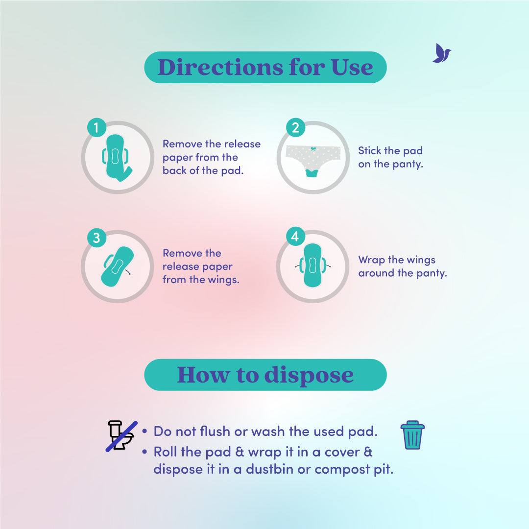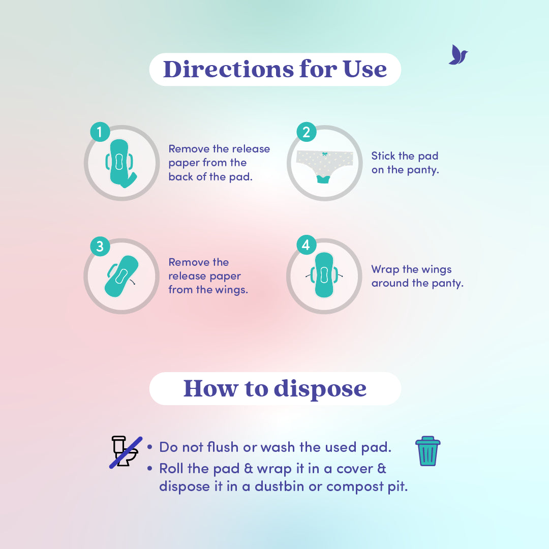 The Bliss Natural Sanitary Combo Pack provides up to 8 hours of protection with a 3x absorption capacity, effectively locking the flow. The bottom layer has a leak-proof breathable sheet, giving long-lasting leak protection.