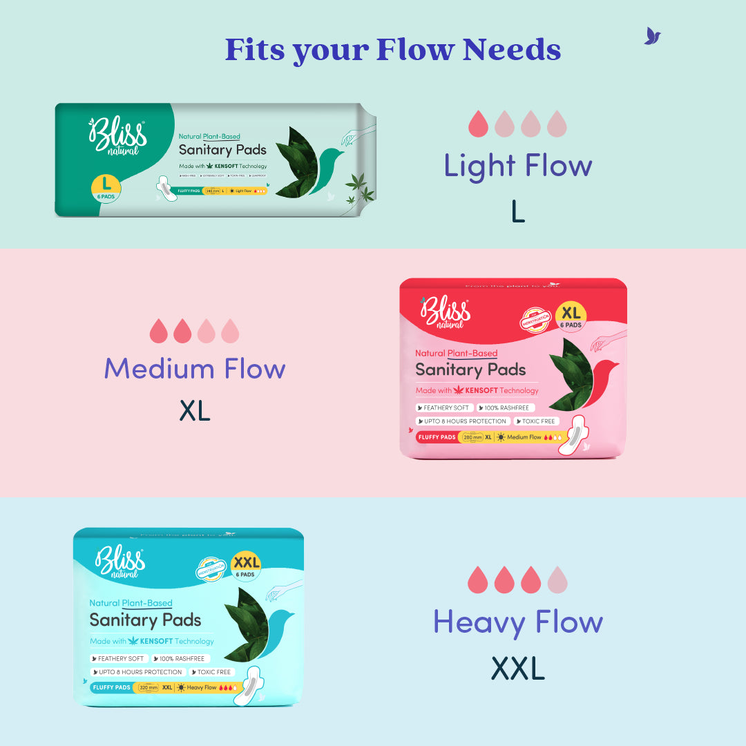 Bliss Natural Sanitary Combo Pack | Fluffy L - XL - XXL (Each Pack contains 6 Pads)