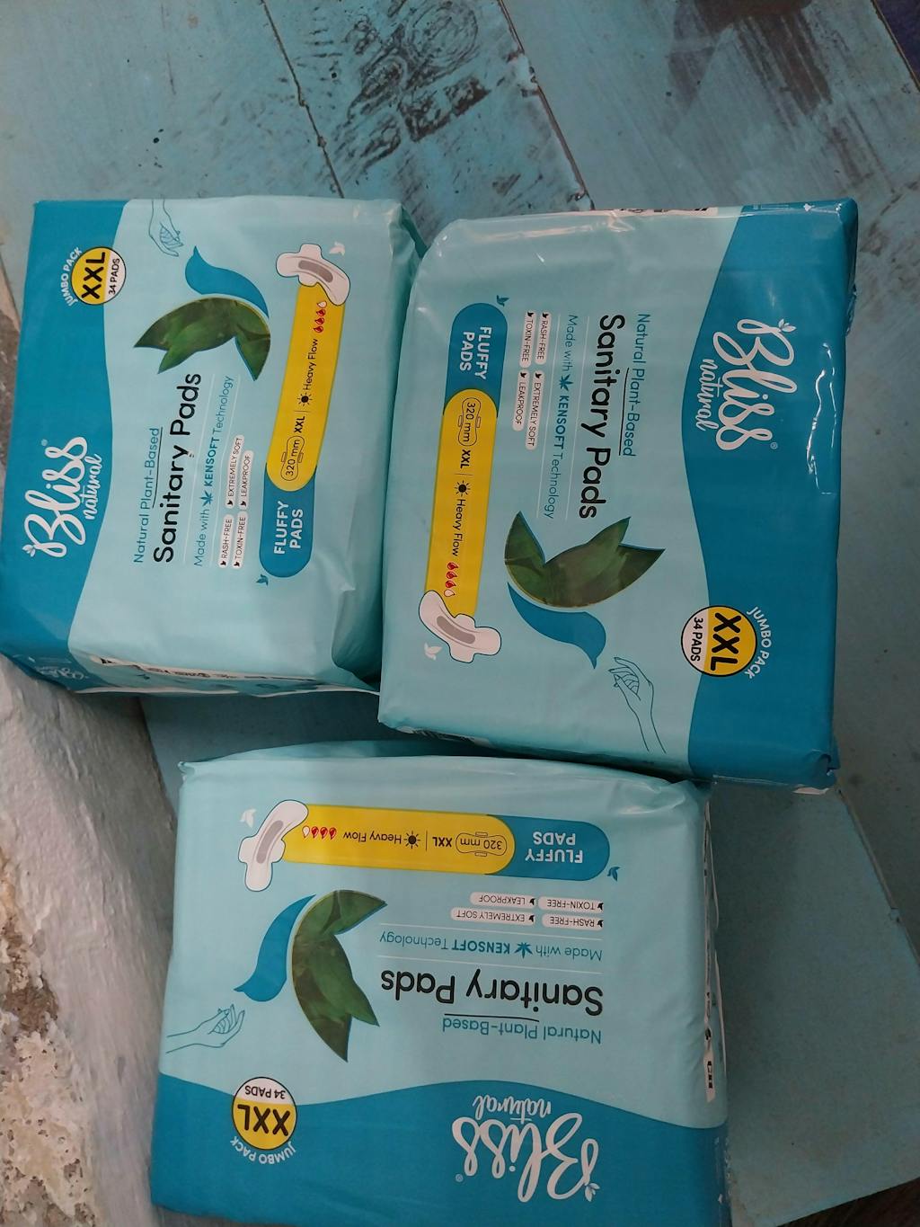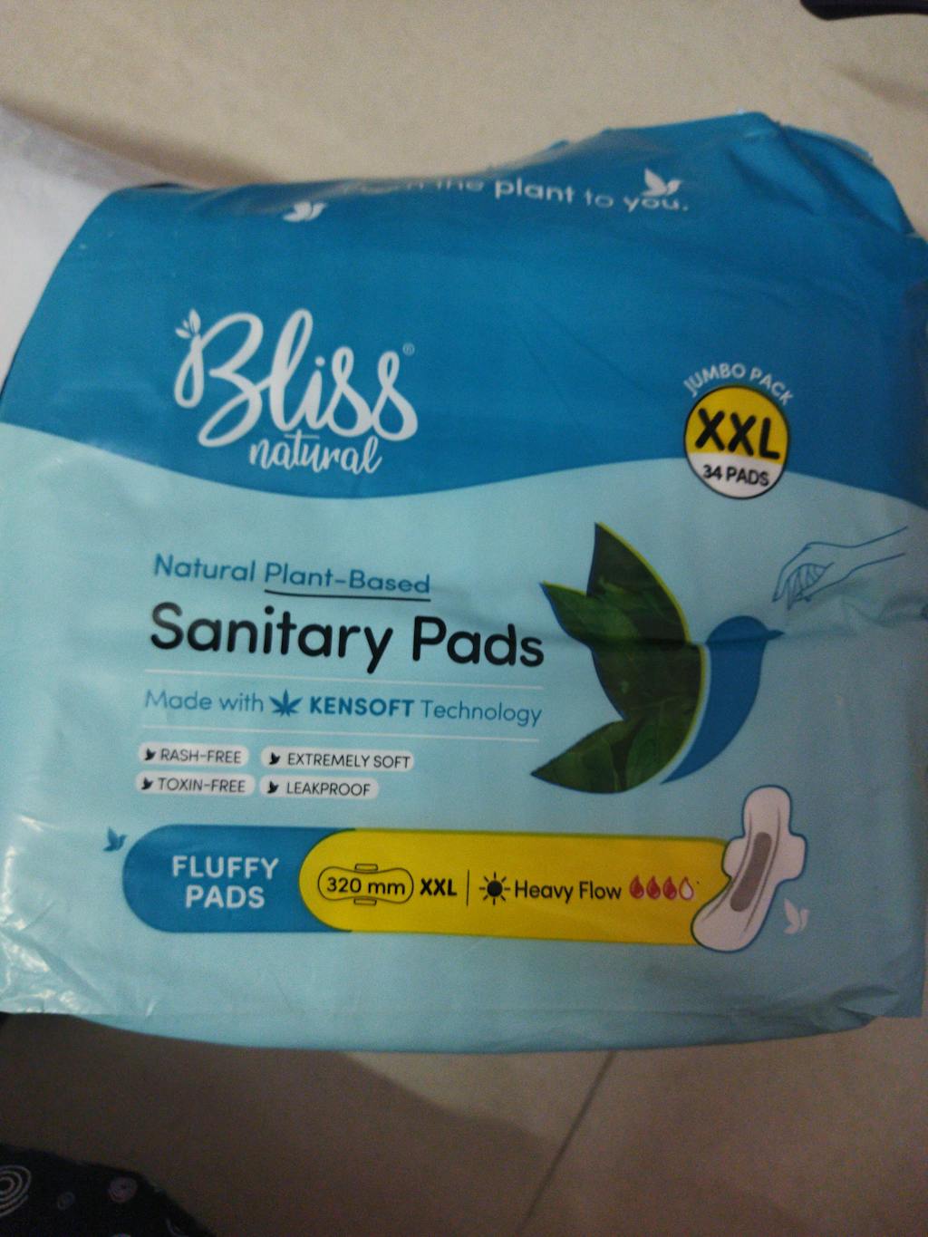 - Types: Bliss Natural 100% organic cotton, Kenaf Based Biodegradable sanitary pads are available in Two types- Fluffy Pads and Slimmy Pads. Fluffy Pads are Regular cushiony Sanitary pads and Slimmy Pads are Ultra Thin Sanitary Pads.