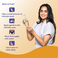 It is infused with Haritaki, gently lightens dark areas while maintaining the natural pH of your intimate area. Gentle and non-irritating, it protects against irritation and infections, promoting even-toned, healthy, fresh, and well-nourished skin every day.